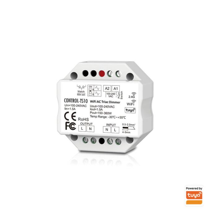 Regulador wifi por corte de fase (leading/trailing) vía tuya, rf 2.4ghz o pulsador // on/off. ac100