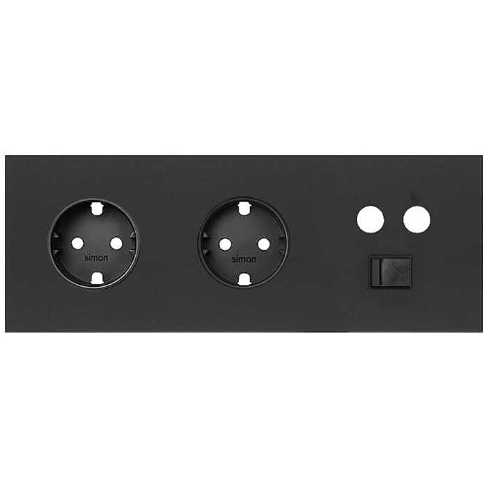 Kit front para 3 elementos con 2 bases de enchufe schuko y 1 toma r-tv+sat única con 1 conector rj45 negro mate simon 100