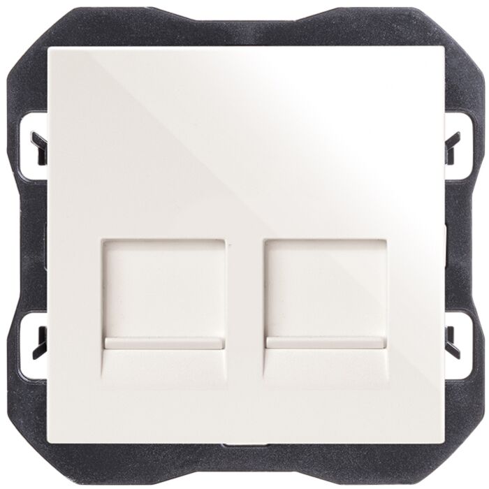 Tapa de voz y datos plana con guardapolvo para 2 conectores rj45 blanco simon 270