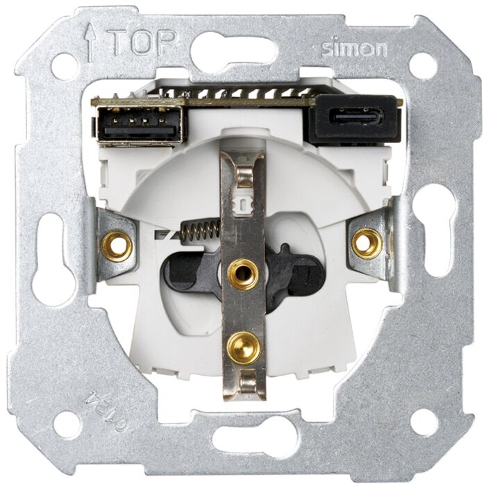 Base de enchufe schuko con doble cargador usb a + c 10,5w simon 75