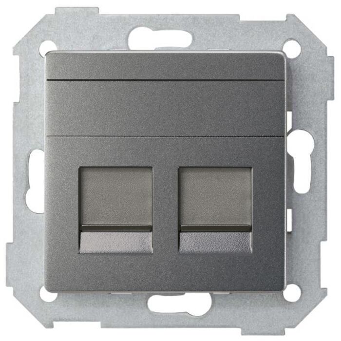 Placa de voz y datos plana con guardapolvo para 2 conectores rj45 titanio simon 82 concept