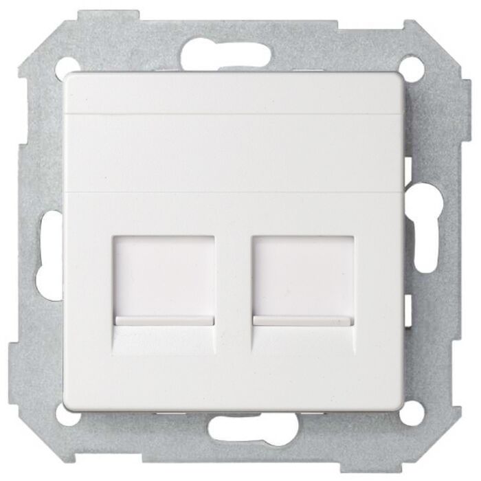 Placa de voz y datos plana con guardapolvo para 2 conectores rj45 amp® blanco simon 82
