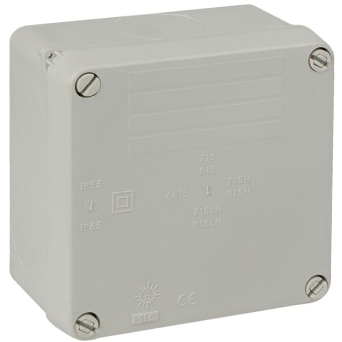 Caja estanca de conexión 100 x 100 x 55 mm sin conos. color gris.