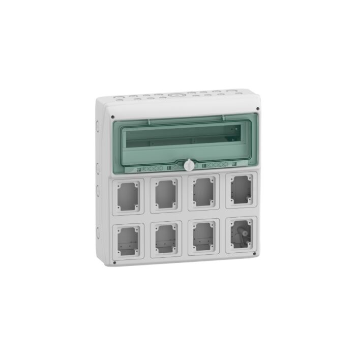 Carcasa para toma aliment., carcasa mureva, 1 x 18 módulos, 8 aperturas 90x100 mm, (an.)448 mm x (al.)460 mm, sin bornero
