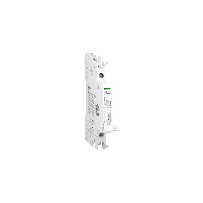 Este auxiliar eléctrico Acti9 es un OC modular y un contacto de falla. Los 2 contactos (2 NA/NC) pueden informar la información de señalización del dispositivo asociado. En la red de CA, la corriente nominal In es de 100mA a 6A con frecuencia operativa de 50Hz a 60Hz a 240VCA, y de 100mA a 3A con frecuencia operativa de 50 Hz a 60 Hz a 415 VCA. En la red CC, la corriente nominal In siempre comienza a 100mA de 24VCC a 130VCC. Alcanza los 6A a 24VCC, 2A a 48VCC, 1,5A a 60VCC y 1A a 130VCC. Dispone de interruptores de 2 posiciones con contactos tipo 2 C/O. Está diseñado para instalaciones nuevas o renovadas en comercios o edificios pequeños. Este contacto de falla y OC es compatible con los rangos de Acti9 como iC60, iID, iDPN ARC, iDPN Vigi, iDPN Vigi ARC, iSW, iC60 y disyuntor de corriente residual de terminales dobles iID (RCCB). El OC y el contacto de fallo están instalados sólo para los rangos Acti9 como dispositivos iID, iDPN Vigi, iSW-NA, ARA, iC60 y RCA, que incluyen 2 contactos de cambio. Si no hay barra de distribución comb, también es compatible con iC40, iC40 ARC, iCV40, iCV40 Vigi ARC. El iSD+OF se utiliza para el nombre corto del dispositivo o para el código de compatibilidad. El indicador mecánico se proporciona en el producto para señalización (Local). Tiene una conexión de terminal de abrazadera de tornillo en la parte superior e inferior. La conexión permite utilizar cables de cobre rígidos. La capacidad de la sección transversal del cable es de 1 mm² a 4 mm². Tiene una conexión de terminal de abrazadera de tornillo en la parte superior e inferior. La conexión permite utilizar cables de cobre flexibles. La capacidad de la sección transversal del cable es de 0,5 mm² a 2,55 mm². Tiene una conexión de terminal de abrazadera de tornillo en la parte superior e inferior. La conexión permite utilizar cables de cobre rígidos (2 cables). La capacidad de la sección transversal del cable es de 2,5 mm². Tiene una conexión de terminal de abrazadera de tornillo en la parte superior e inferior. La conexión permite conexiones flexibles con cables de cobre de férula (2 cables). La capacidad de la sección transversal del cable es de 1,5 mm². La tensión nominal de aislamiento (Ui) es de hasta 500 V. Tiene una tensión nominal de resistencia a impulsos (Uimp) de 4 kV. La anchura de los módulos de 9mm es 1. Las dimensiones son (An.) 9 mm x (Alt.) 90 mm x (Prof.) 73 mm. El color del producto es blanco (RAL 9003). El grado de polución es 3. El nivel de tropicalización es el tratamiento 2. El par de apriete de la conexión es 1N.m (inferior) para el tipo de destornillador PZ1. De acuerdo con la norma IEC 60529, el grado de protección IP es IP20. La temperatura de funcionamiento es de -35°C a +70°C. La temperatura de almacenamiento va de -40°C a +85°C. Este producto cumple con las normas EN/IEC 60947-5-1 y GB/T 14048.5. Este producto está certificado con las marcas CE y UKCA.