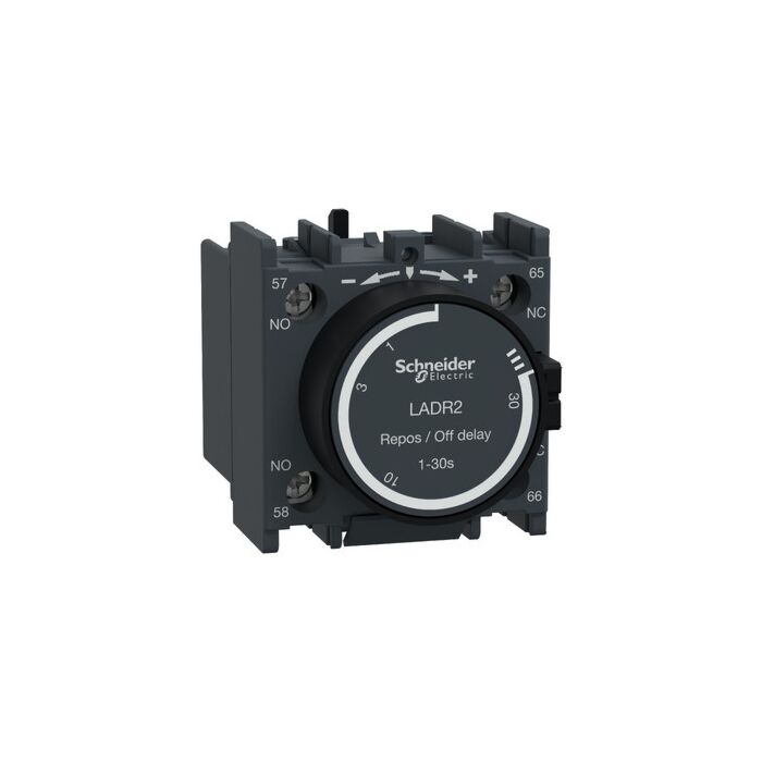 Bloque de contactos temporizados auxiliar, tesys deca, 1na+1nc, retardo desactivado 1-30s, frontal, terminales con abrazaderas de tornillo